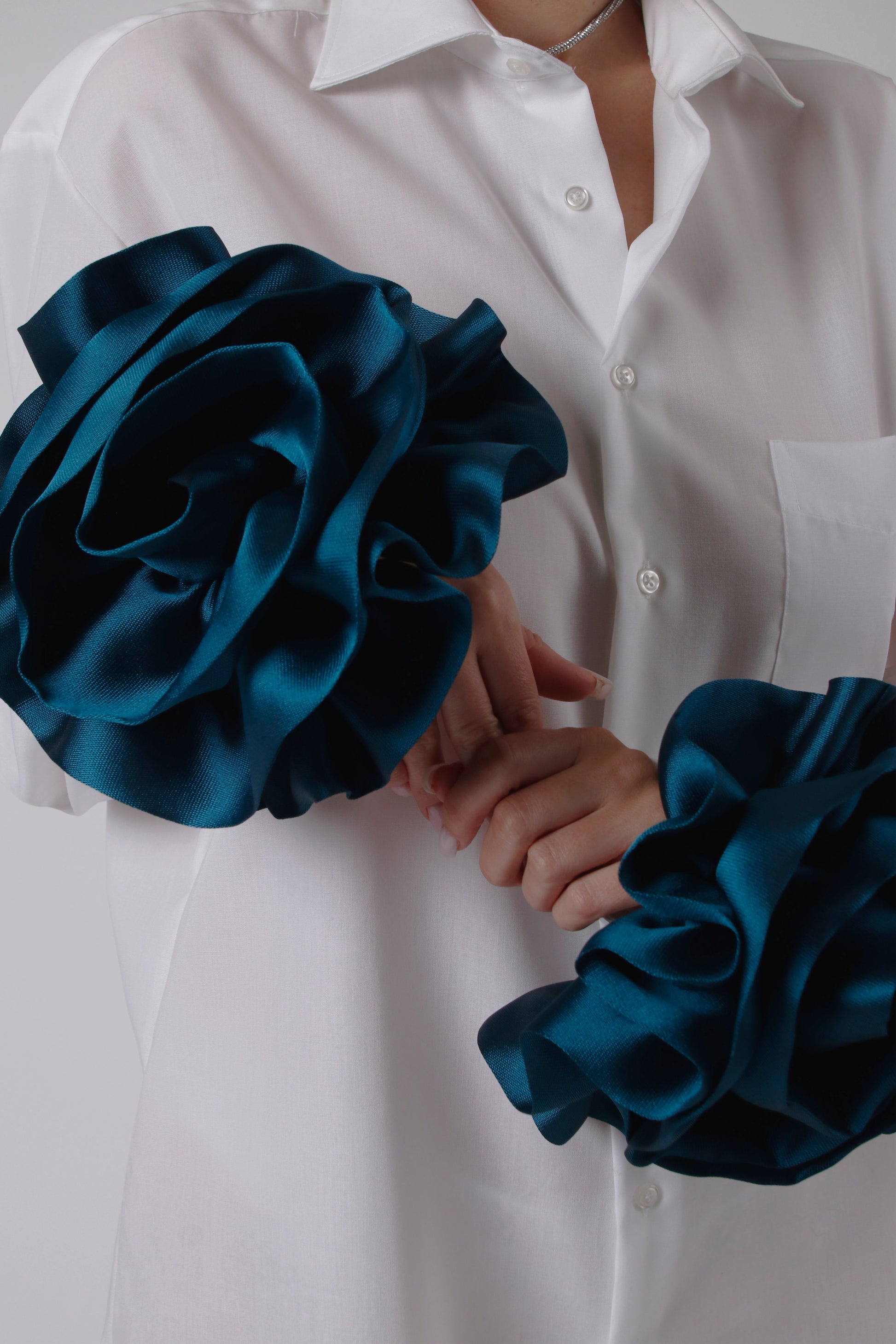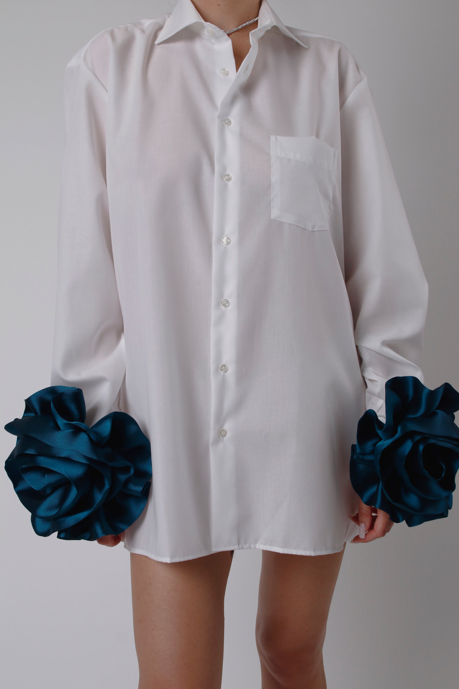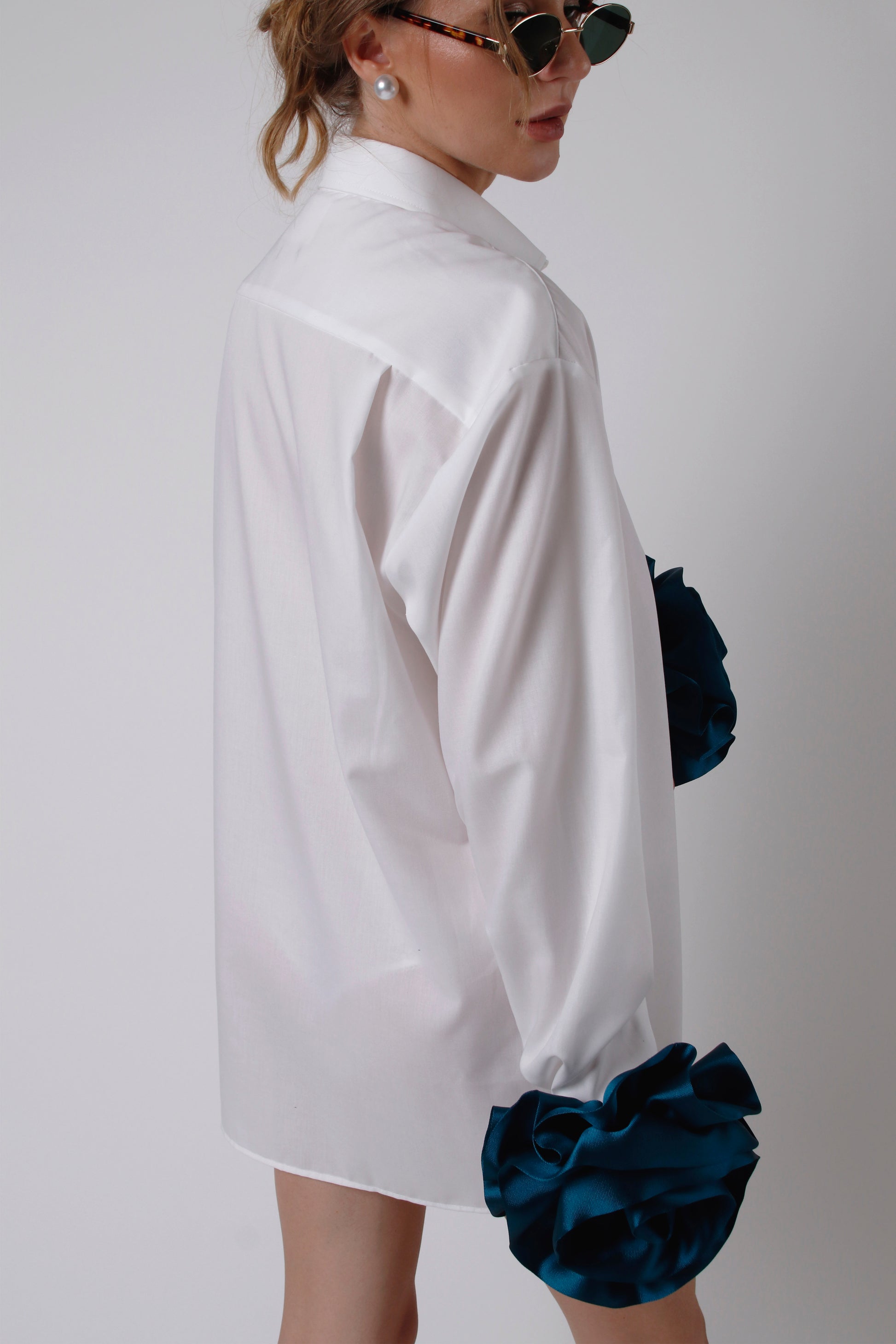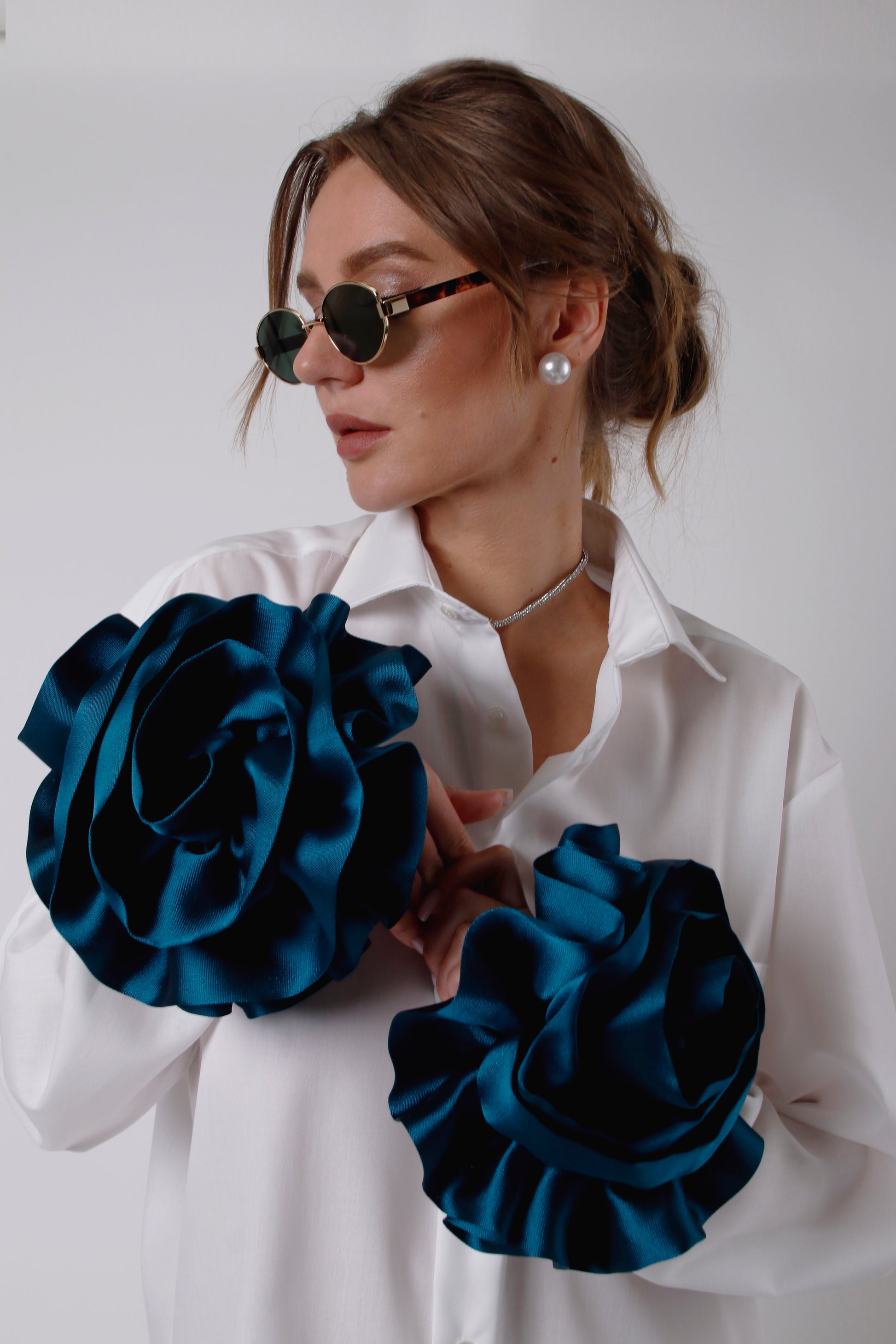 Cotton shirt, featuring stunning removable silk flowers. This trendy piece blends sustainability with high fashion, allowing you to switch up your look. Perfect for making a POSH statement. Get ready to turn heads with this unique, elegant design!