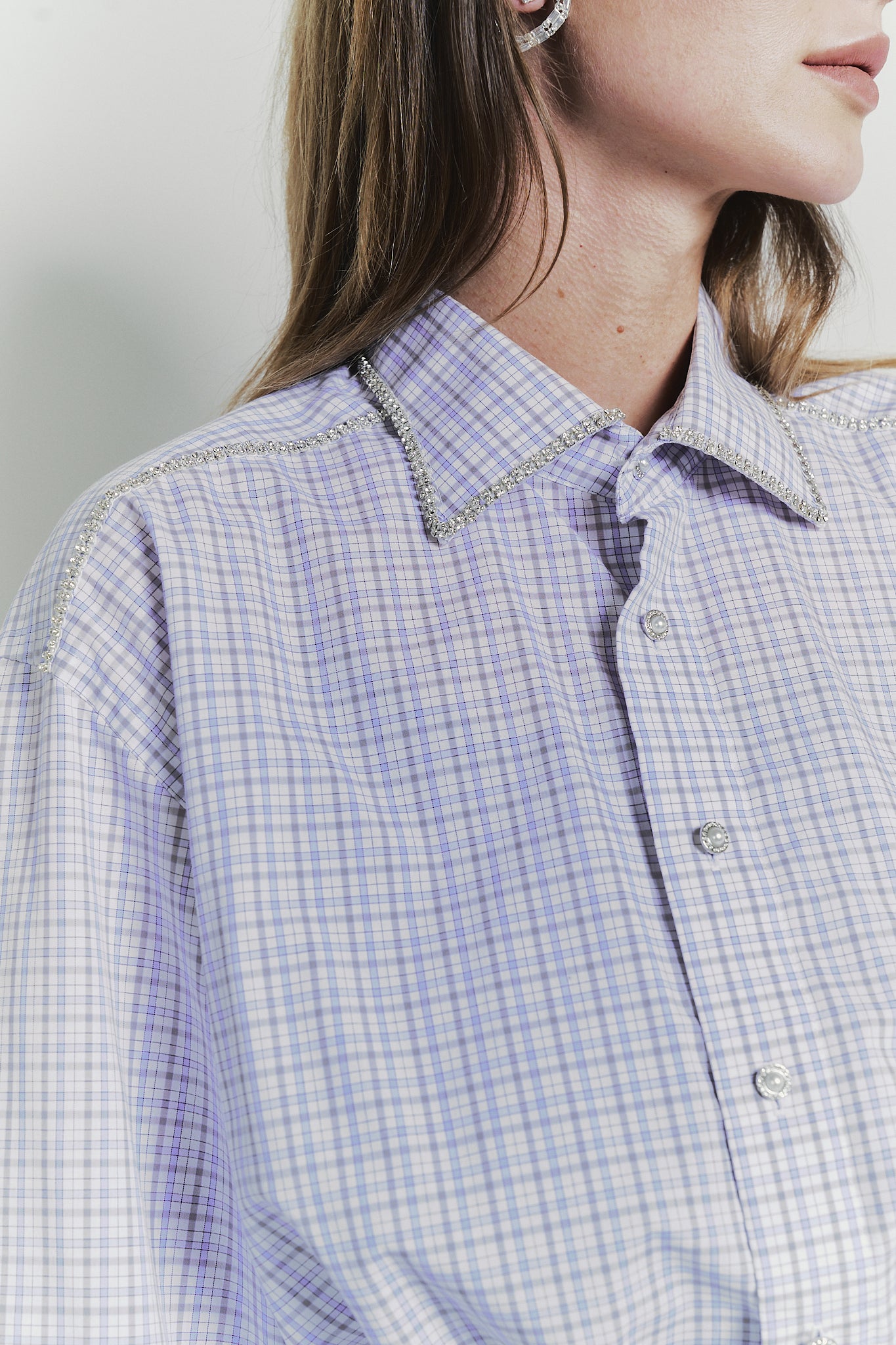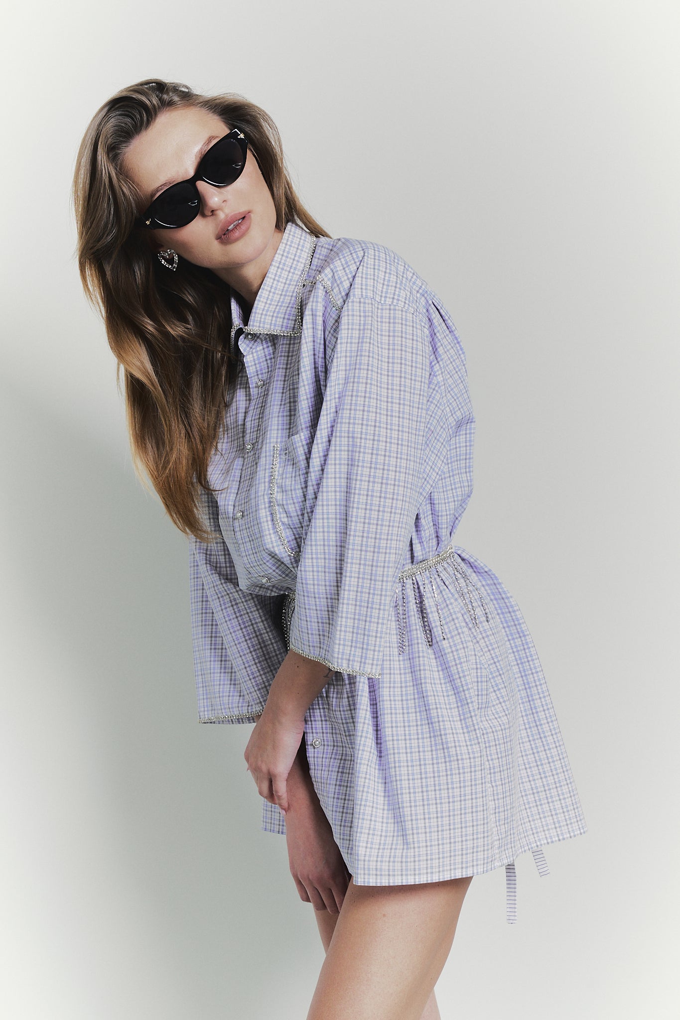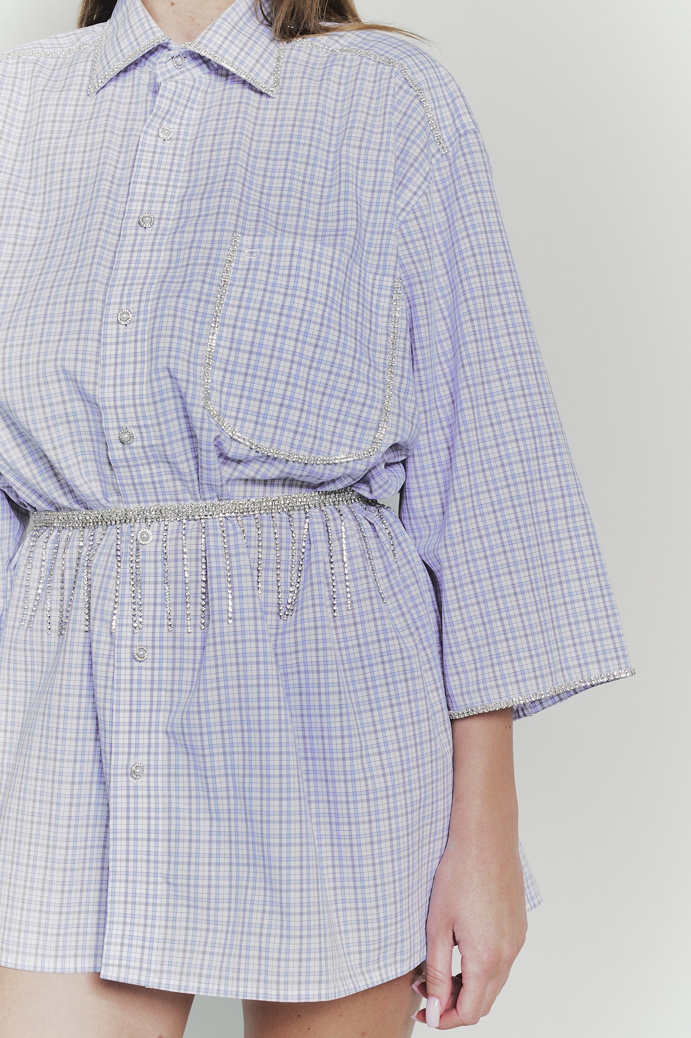 The GLAMOROUS GLITTER shirt is a stunning representation of both style and sustainability. Crafted from 100% upcycled cotton, this elegant shirt features eye-catching rhinestone accents and a shiny belt. Elevate your wardrobe with a touch of timeless glamour and make an eco-friendly statement with this one-of-a-kind piece.