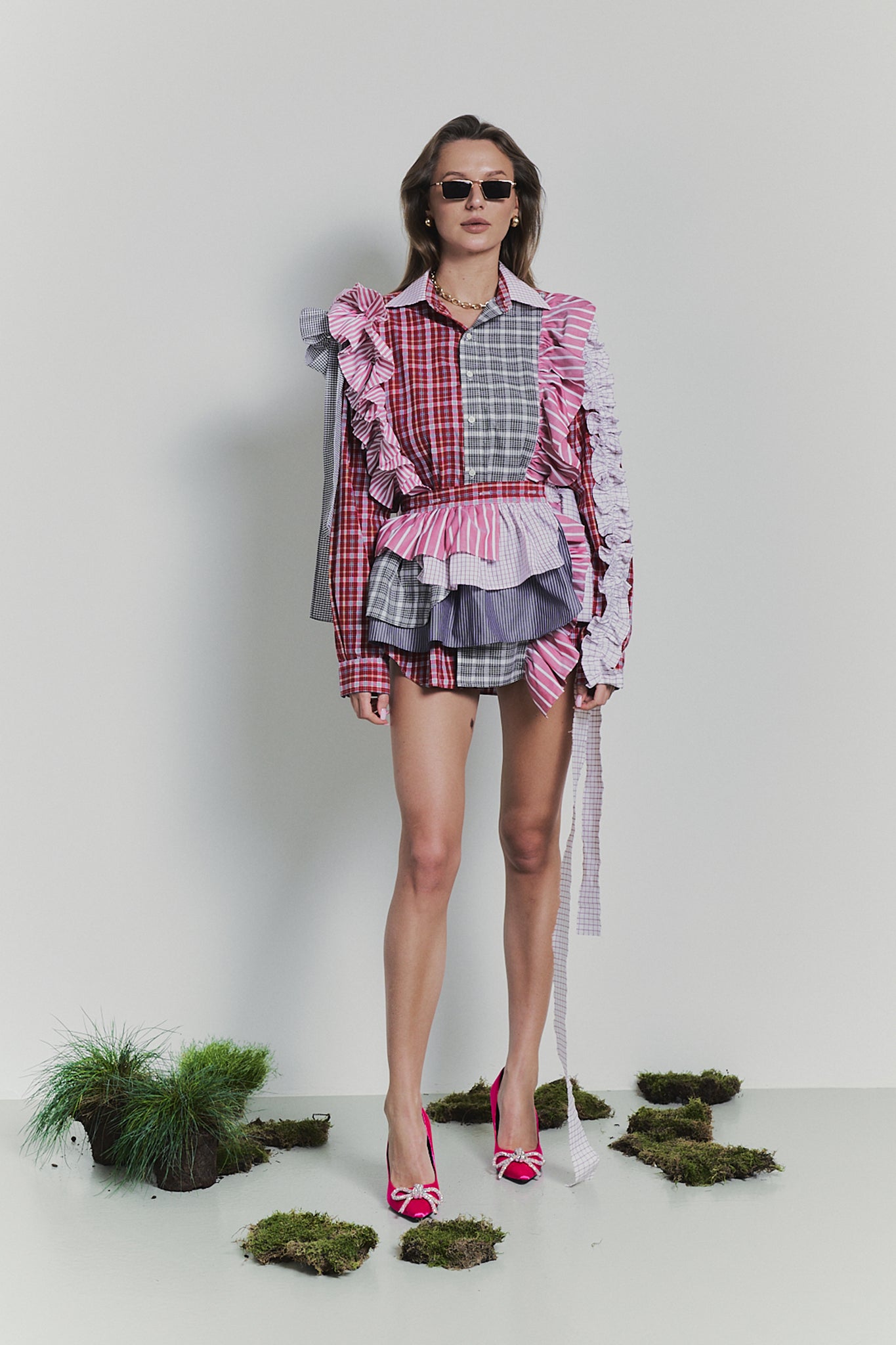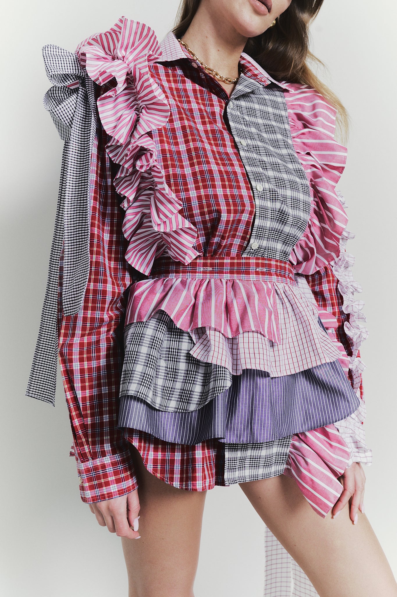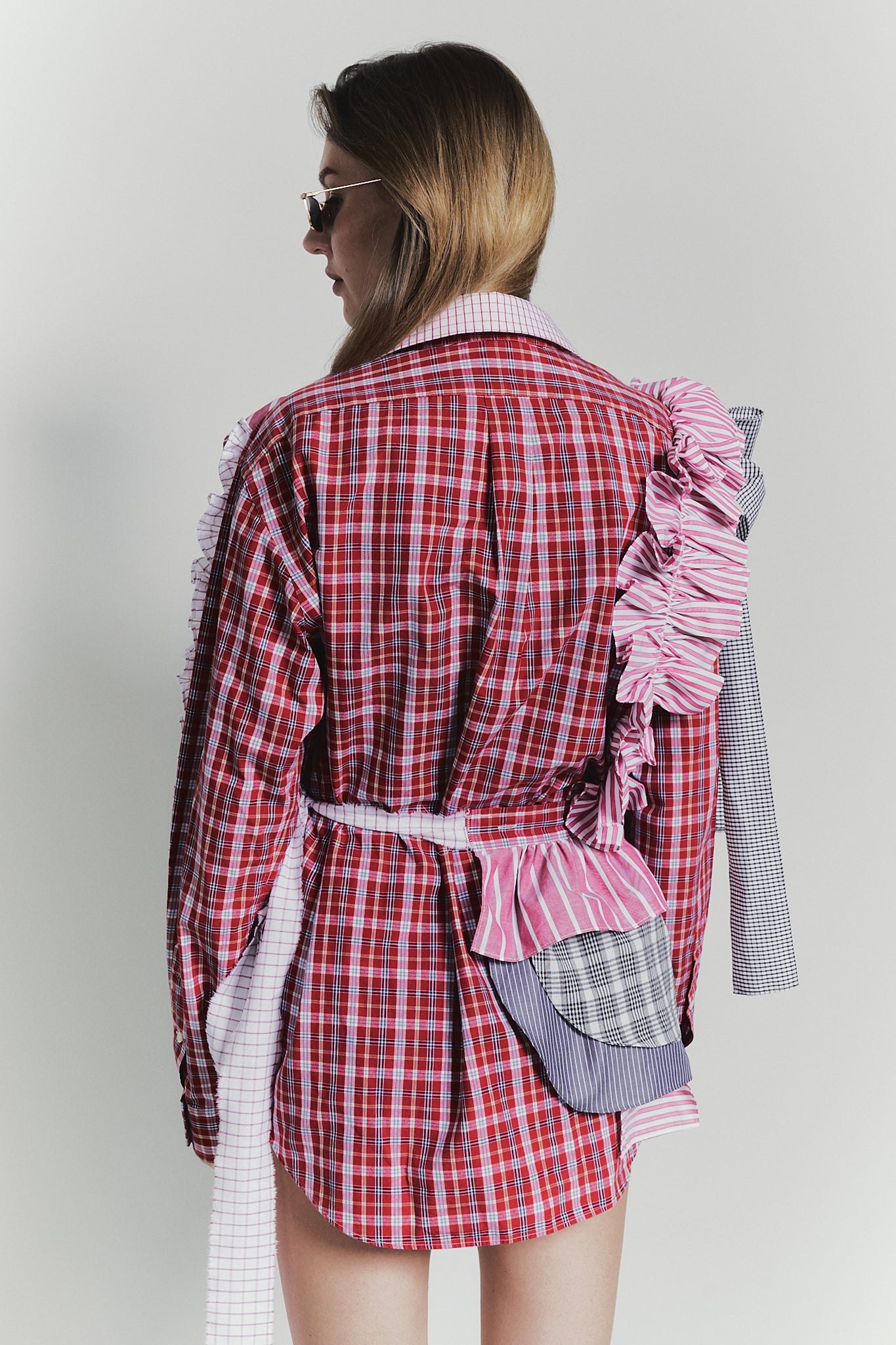 Unleash your uniqueness with this exquisite red shirt, accentuated by a multi-layered belt. Its bold red tones will make every moment, even your morning coffee, feel like a special occasion